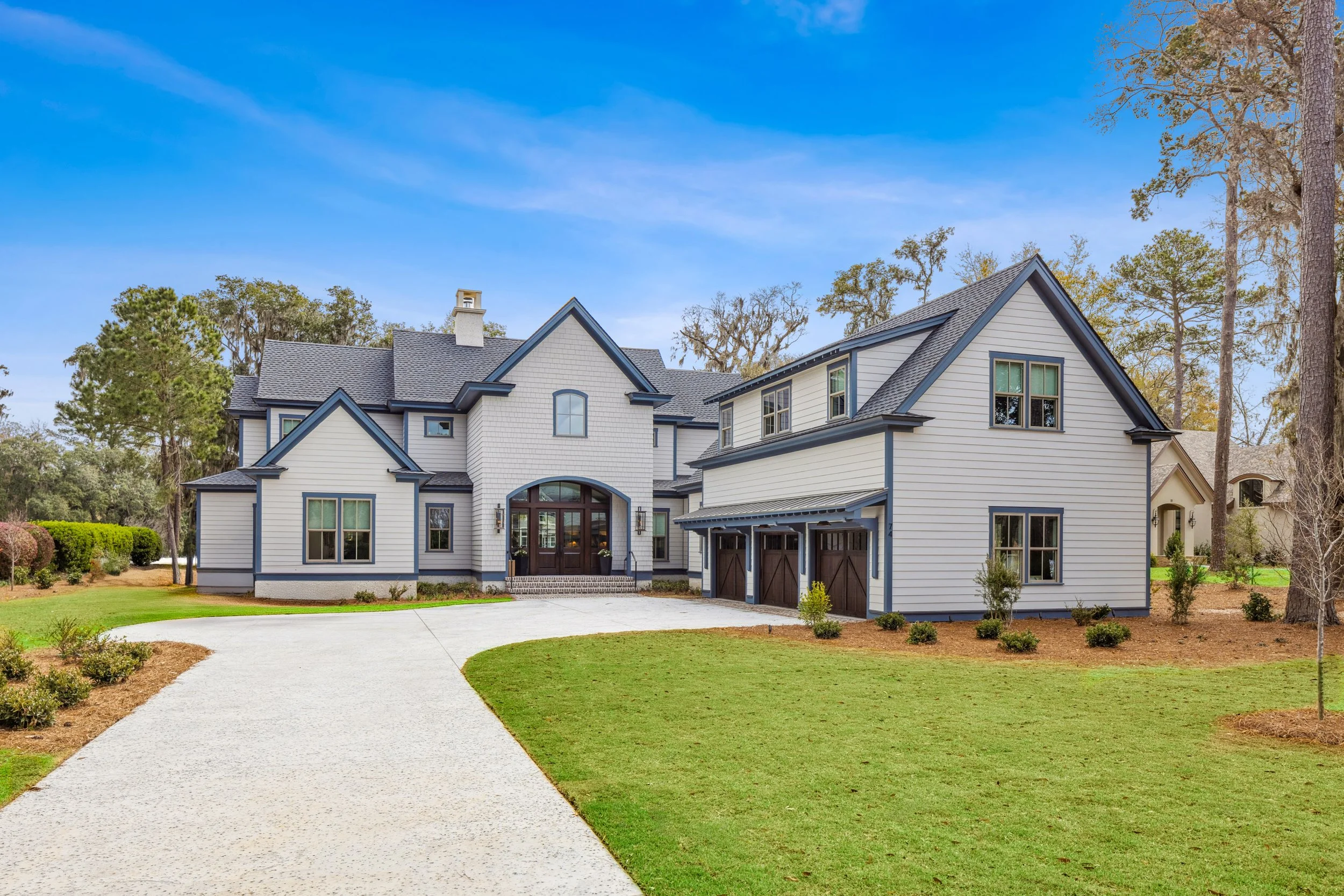 With the right editing techniques, the image was brought to life—adjusting exposure and contrast to add warmth and vibrancy, correcting the sky to reflect a more natural, inviting day, and making sure the details of the home stood out rather than getting lost in the flat lighting.
